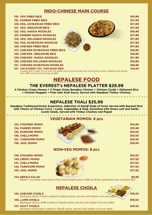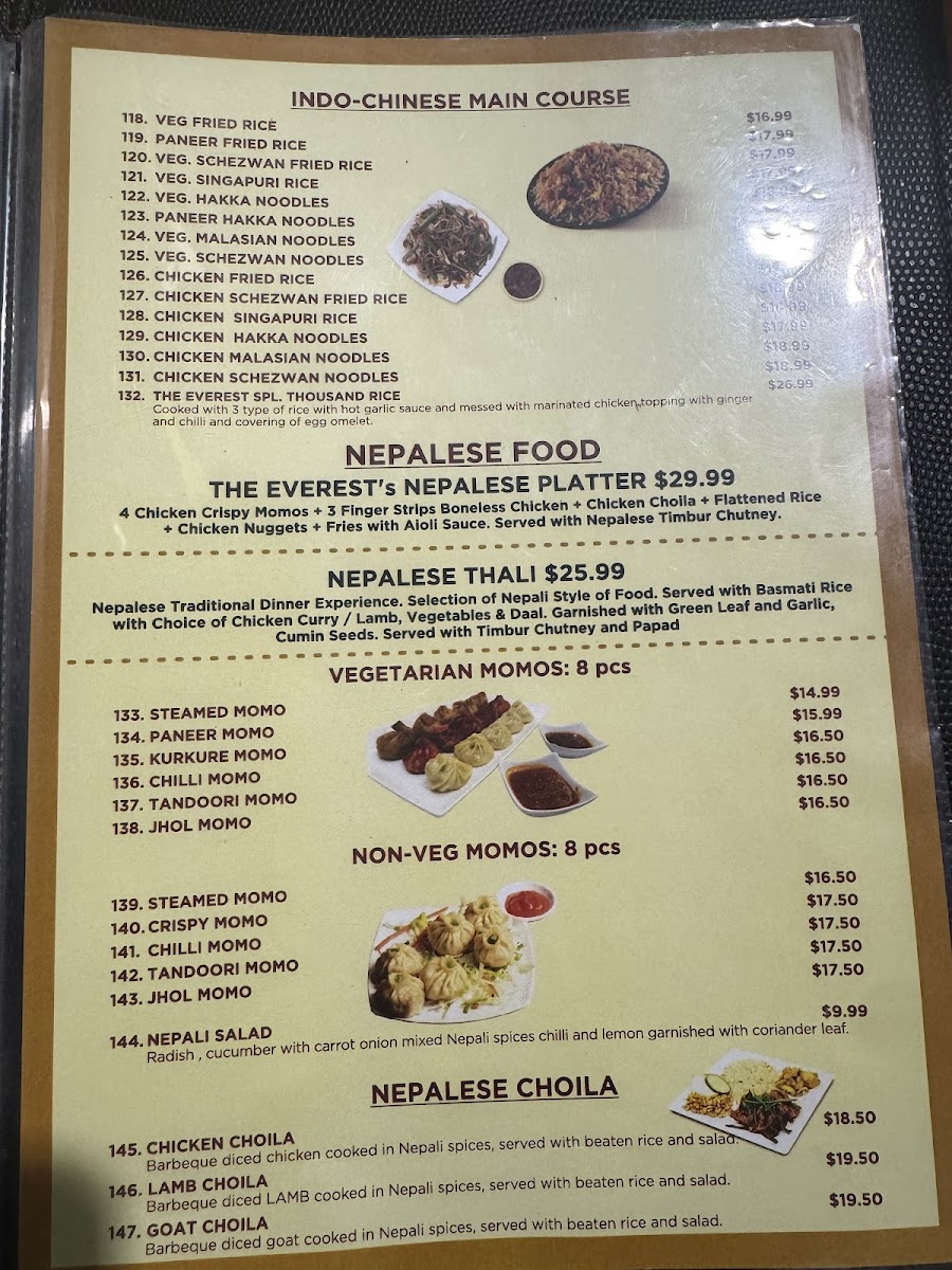 Diners rave about the generous portions and exceptional service, highlighting dishes like the Nepalese Thali and Vegetarian Momo. Dessert enthusiasts can relish delightful treats such as Mango Kulfi and Gulab Jamun. Each visit promises a unique culinary adventure that invites you back for more. Overall, The Everest serves not just food, but a heartfelt experience characterized by warmth and flavor, making it a highly recommended spot for food lovers!