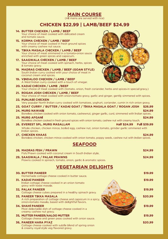 Welcome to The Everest, a hidden gem located in the heart of Napier, New Zealand. This vibrant restaurant offers an enticing menu that showcases the rich flavors of Nepalese, Indian, and Tibetan cuisines. Their Lunch Special is a must-try, featuring a fulfilling combination of half curry, half rice, naan, and a drink for just NZ$15.99. For mains, indulge in their aromatic dishes like Vindaloo Lamb or the creamy Butter Lamb, both priced at NZ$27.81.